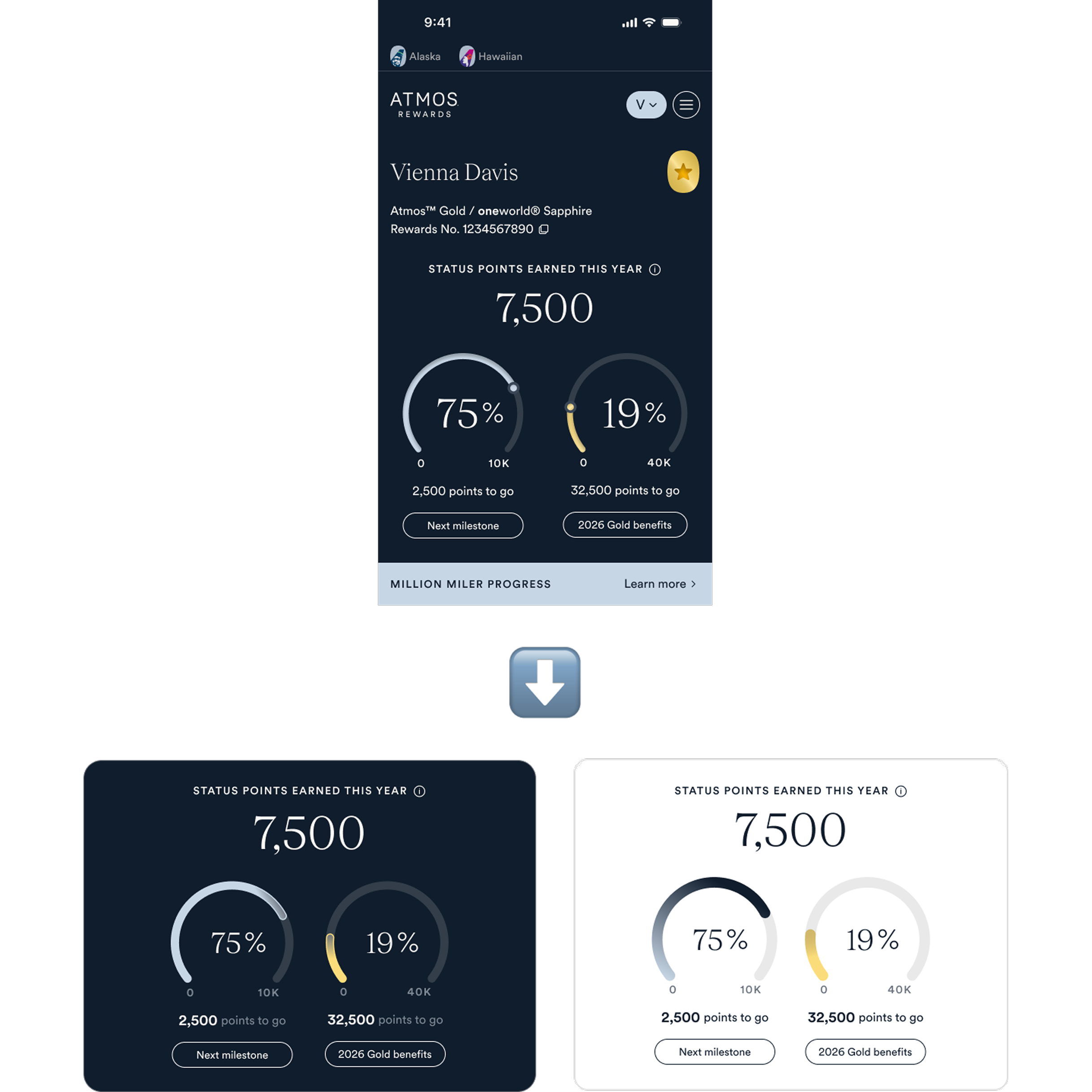 We initially explored options that preserved the header image while improving accessibility, but ultimately found that it still took up too much valuable space above the fold. Removing the image allows key information to surface earlier, reducing unnecessary scrolling and keeping users focused on what matters. We introduced a personalized membership card to prominently display the user’s status and provide quick access to copying their reward number .