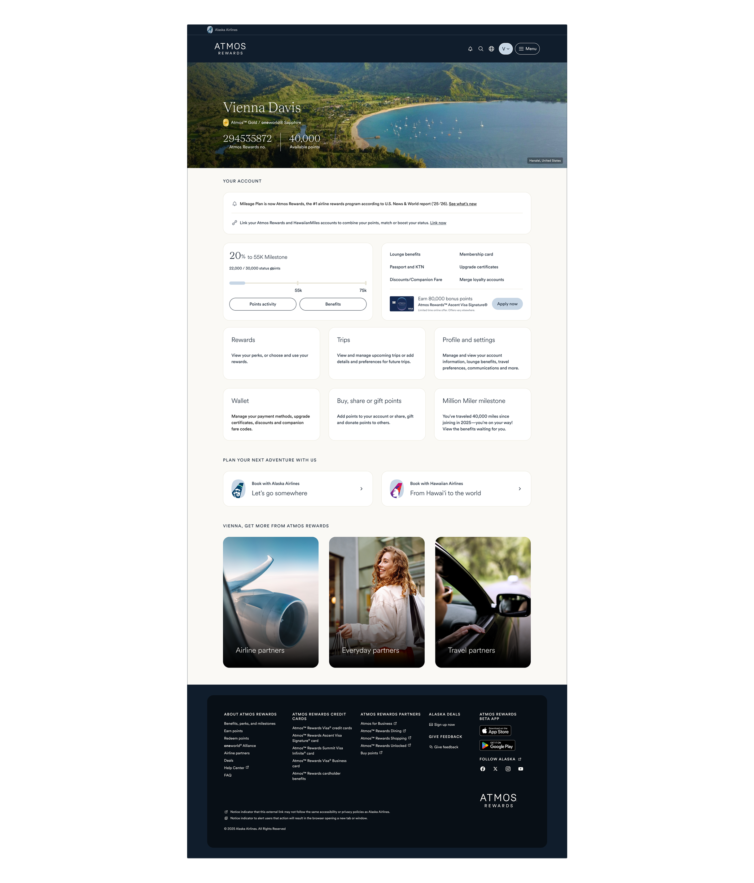 The Atmos Rewards account overview serves as the main dashboard for members to view and manage their loyalty status. It provides a snapshot of their rewards balance, trips, and other personalized information.